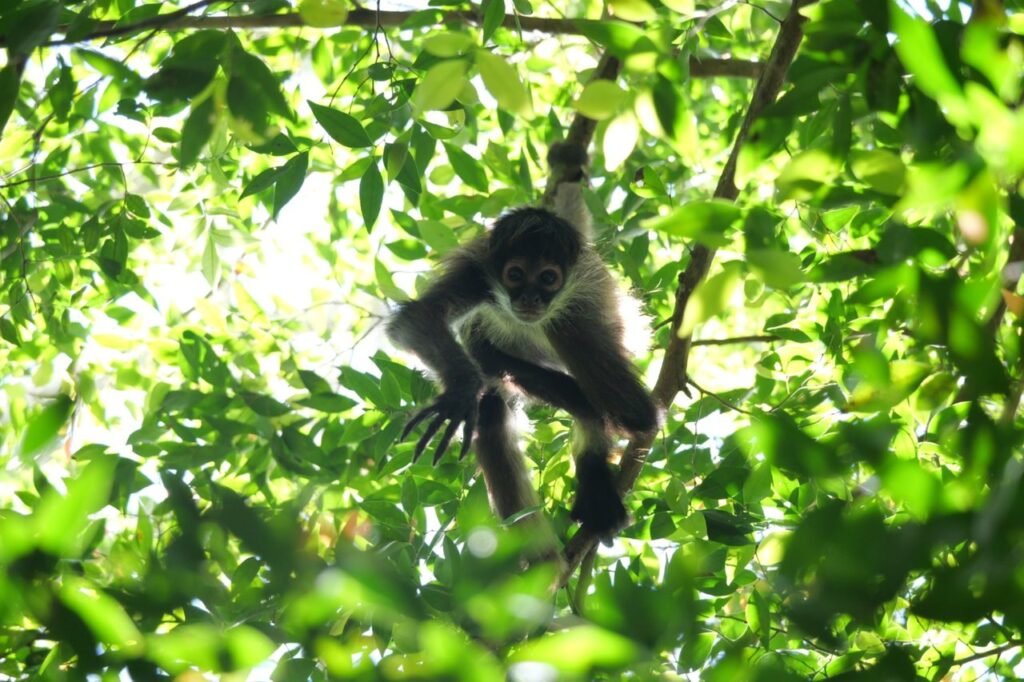 Nous pénétrons ensuite au cœur de la jungle pour une marche guidée par un guide francophone certifié à la recherche des singes araignées et hurleurs. Le long des sentiers, nous prendrons aussi le temps d’observer les nombreux détails de la nature qui nous entoure : fleurs, arbres, bruissements, empreintes…